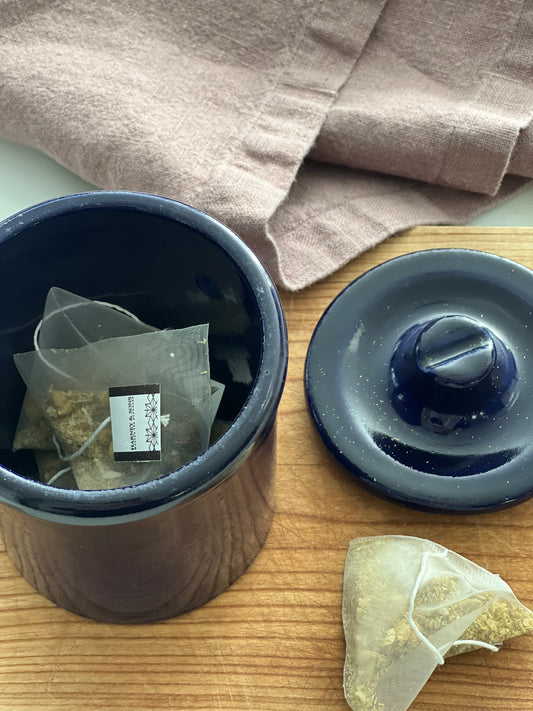 Vintage Blue Stoneware Crock with Locking Lid