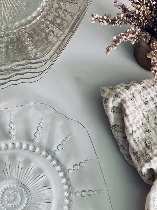 1930's Glass Starburst Plates (Set of 8)