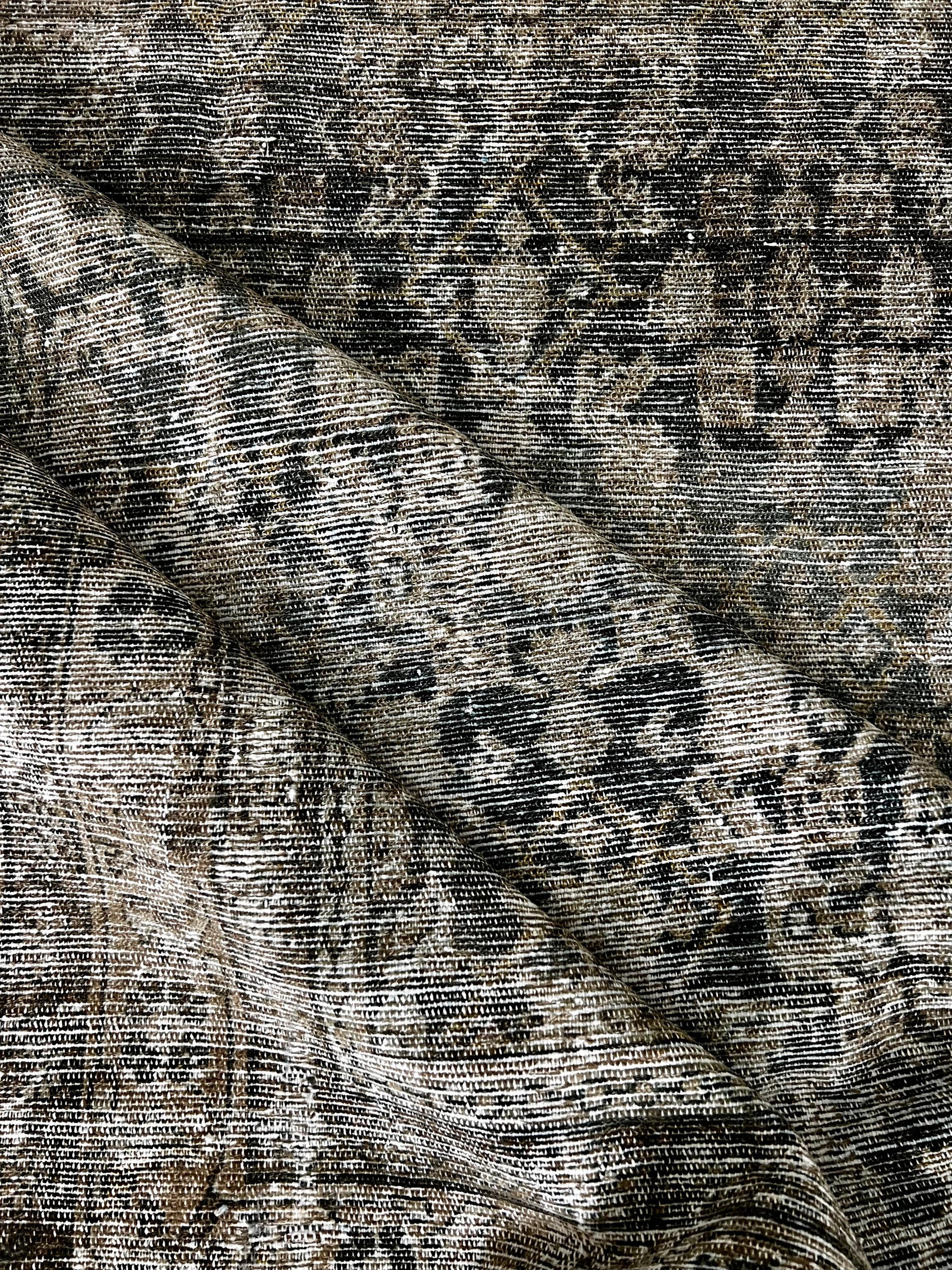 Hues of cream, charcoal grey, navy, toffee and slate grace the field of the rug with beautiful undulation of color throughout.