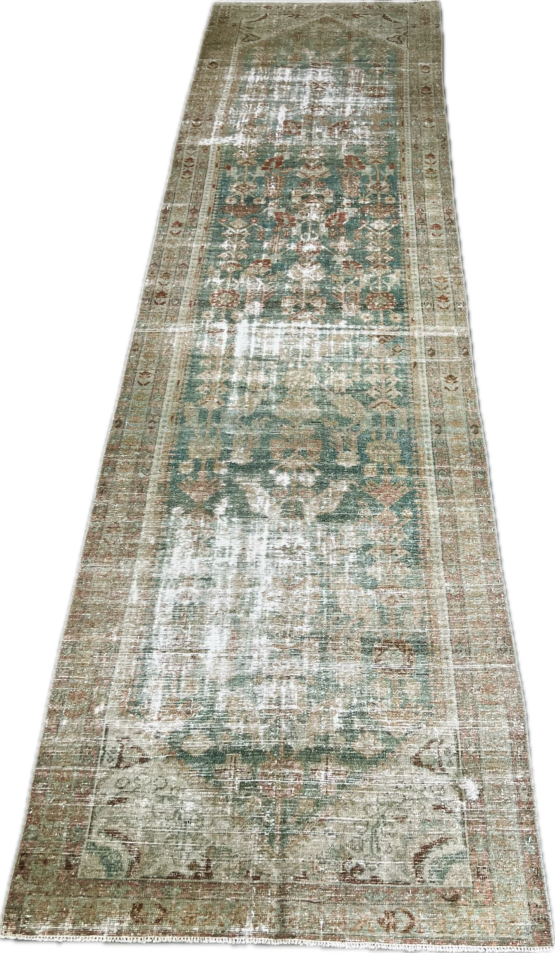 Gently muted colors on this antique Malayer allow it to anchor many spaces with a subtle statement. We love that antique rugs are meant for use- they make great entry way and kitchen pieces and can stand up to even the heaviest foot traffic or spill.