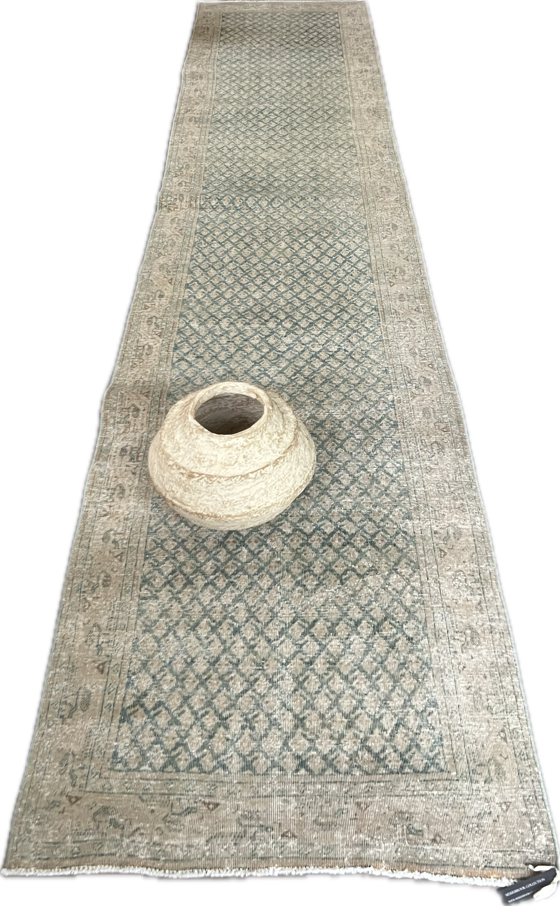 Gently muted colors on this antique Tabriz runner allow it to anchor many spaces with a subtle statement. We love that antique rugs are meant for use- they make great hallway and kitchen pieces and can stand up to even the heaviest foot traffic or spill.