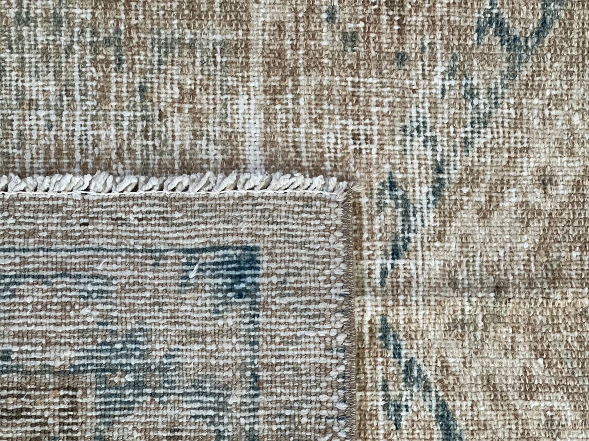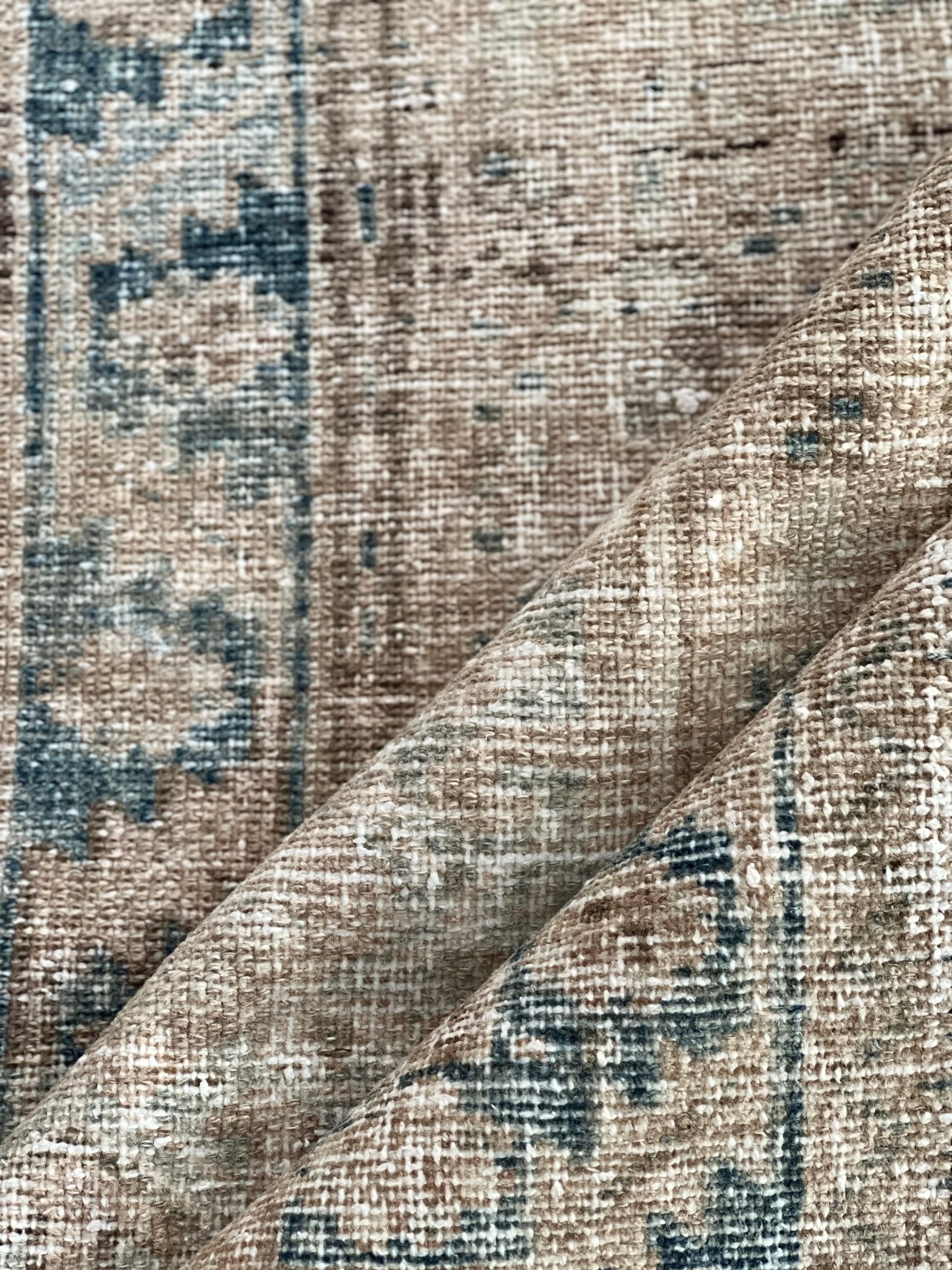 Woven by hand with vegetable dyes in the early 1900s, this rug is a true gem. The field celebrates highlights of cerulean, dusty blue, camel and sand. The compilation of months of work and thousands of individually hand tied knots come together to create this incredible work of art.