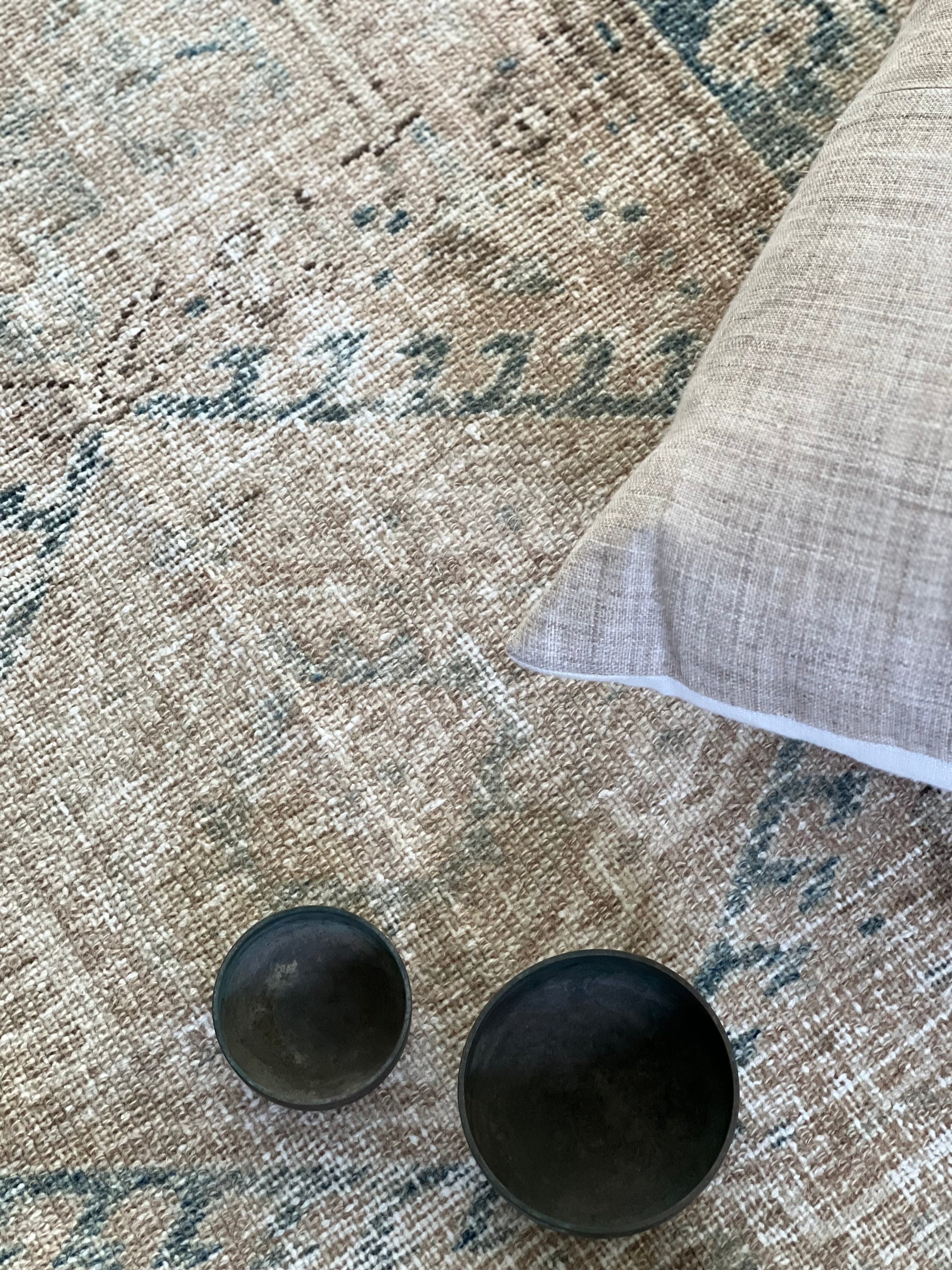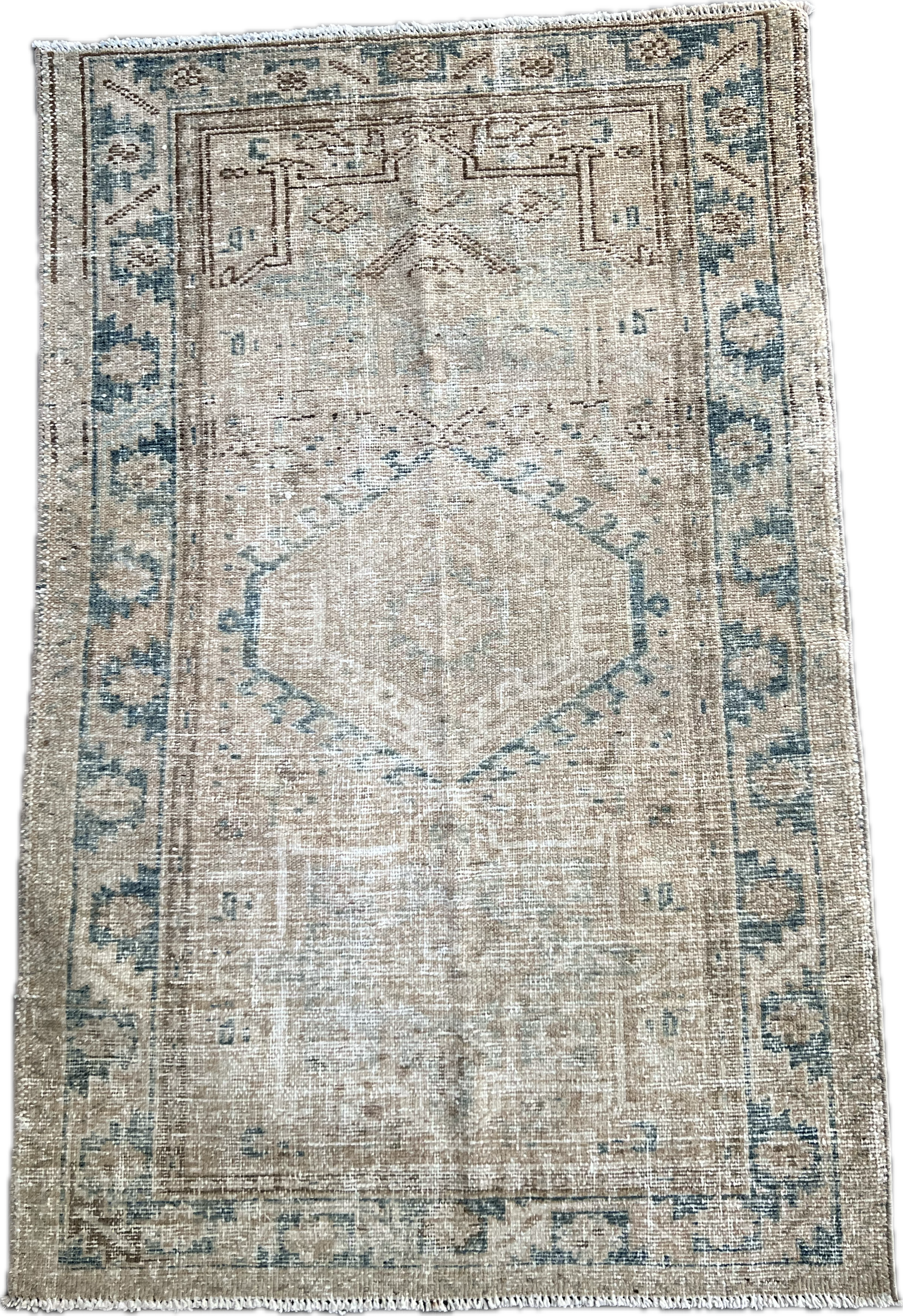 Gently muted colors on this antique Karaja scatter rug allow it to anchor many spaces with a subtle statement. We love that antique rugs are meant for use- they make great hallway and kitchen pieces and can stand up to even the heaviest foot traffic or spill.