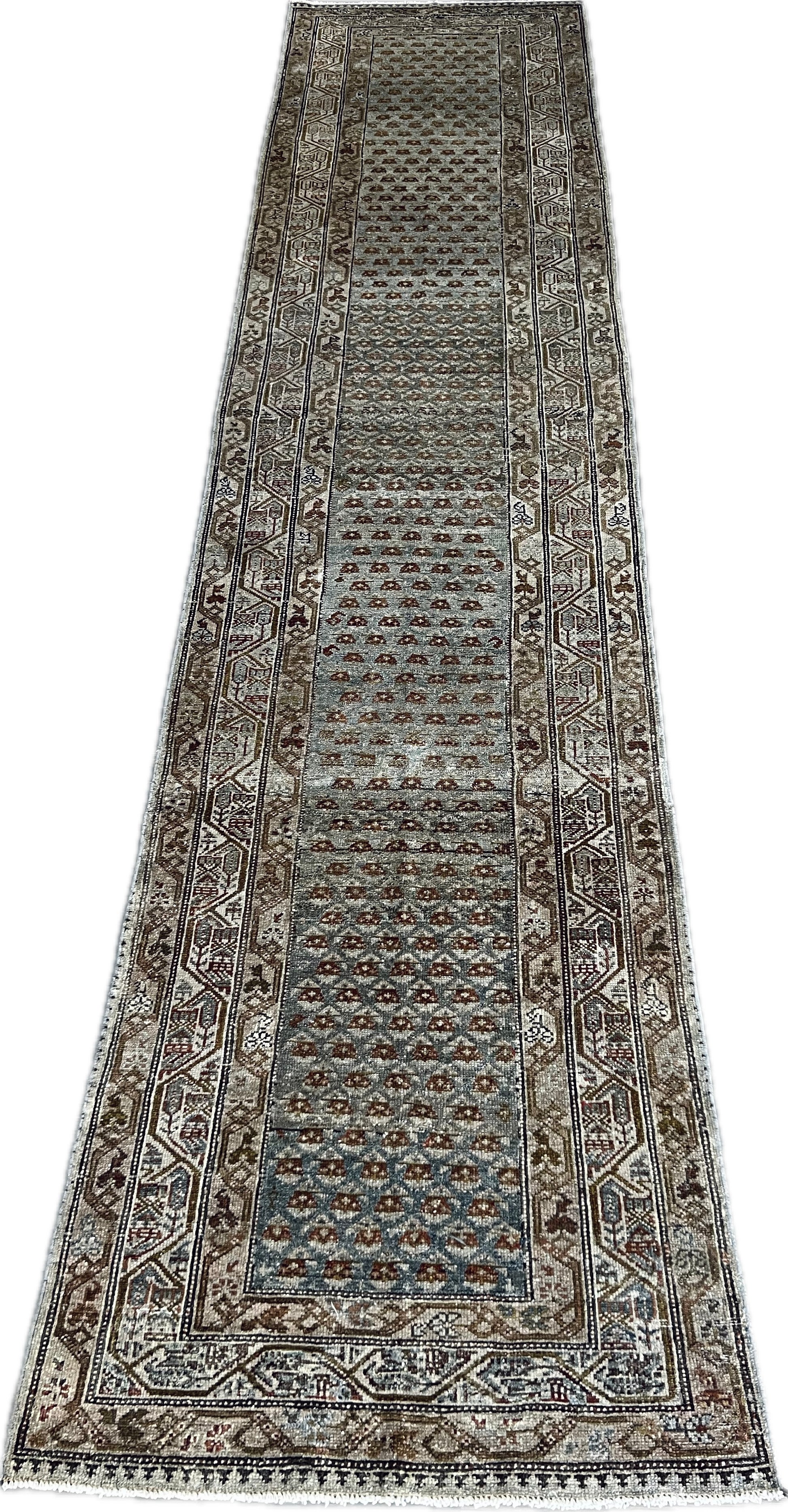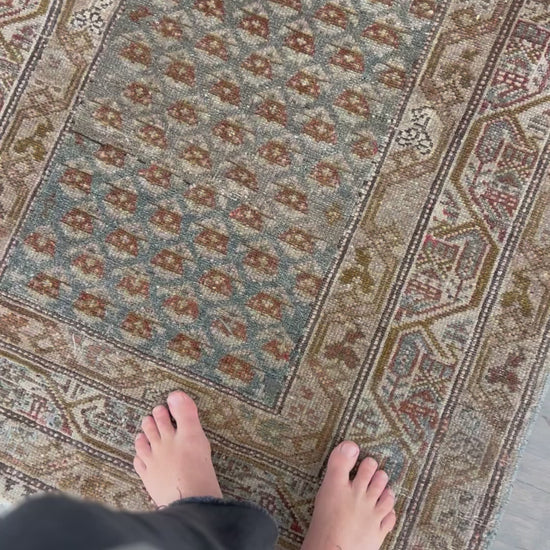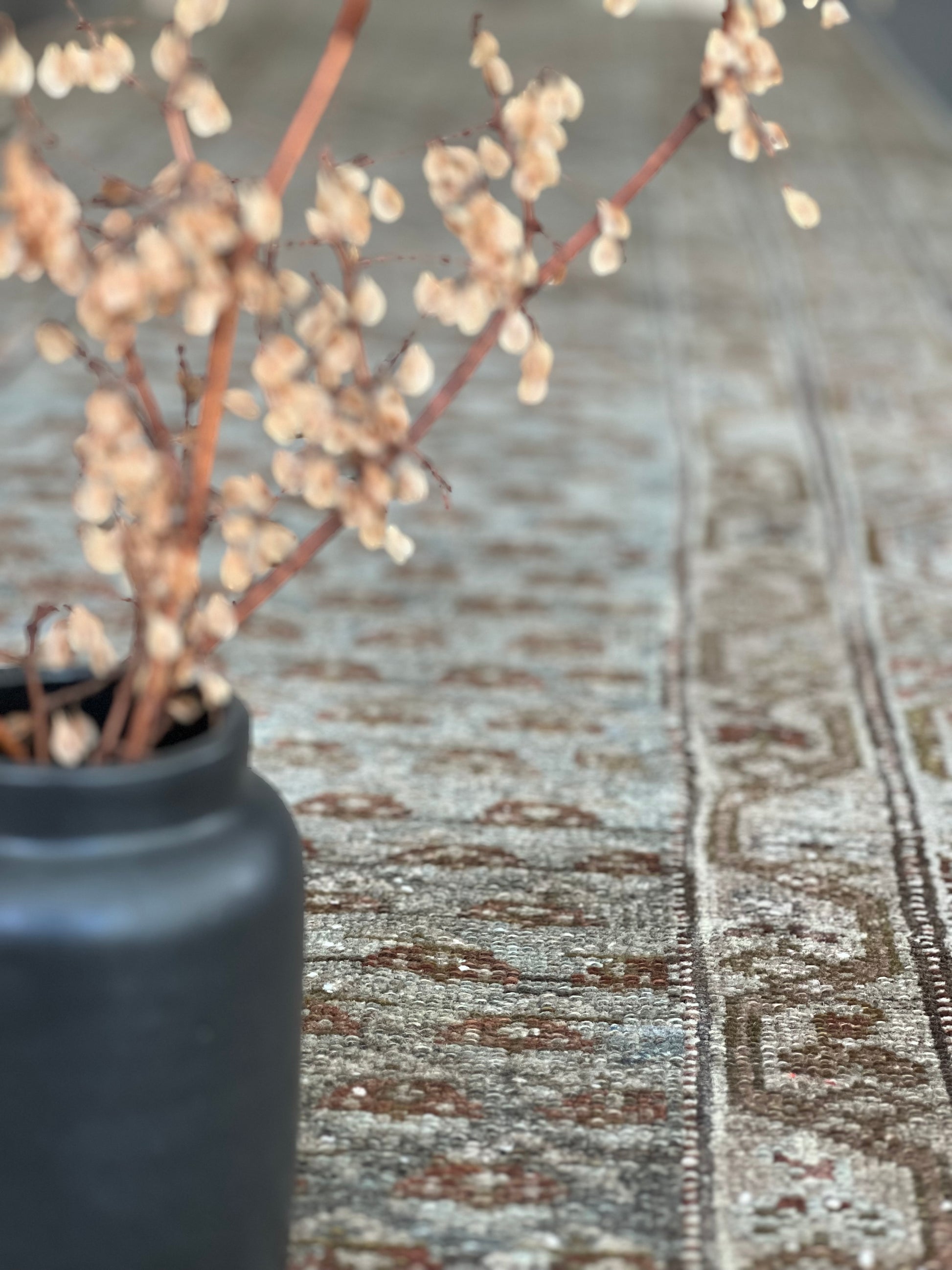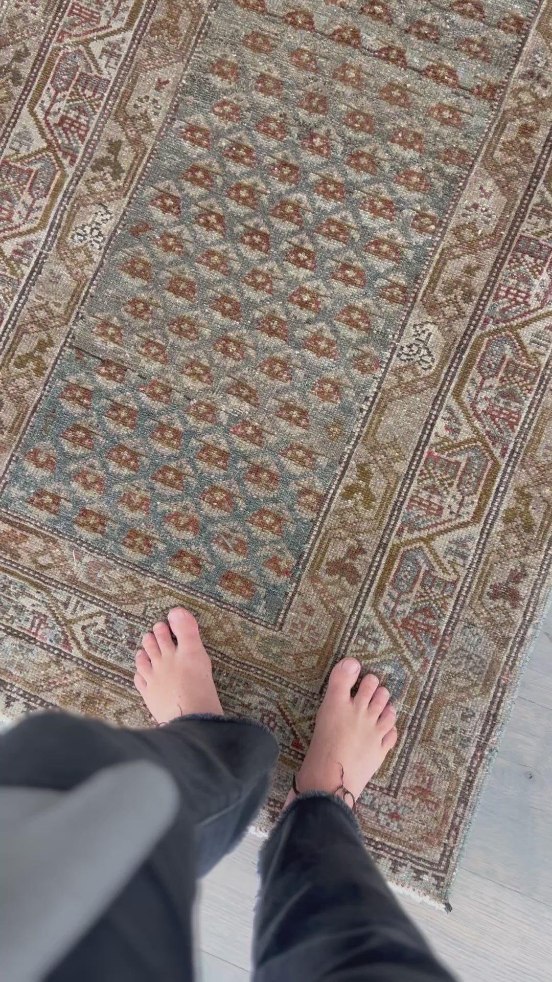Gently muted colors on this antique Malayer runner allow it to anchor many spaces with a subtle statement. We love that antique rugs are meant for use- they make great hallway and kitchen pieces and can stand up to even the heaviest foot traffic or spill.
