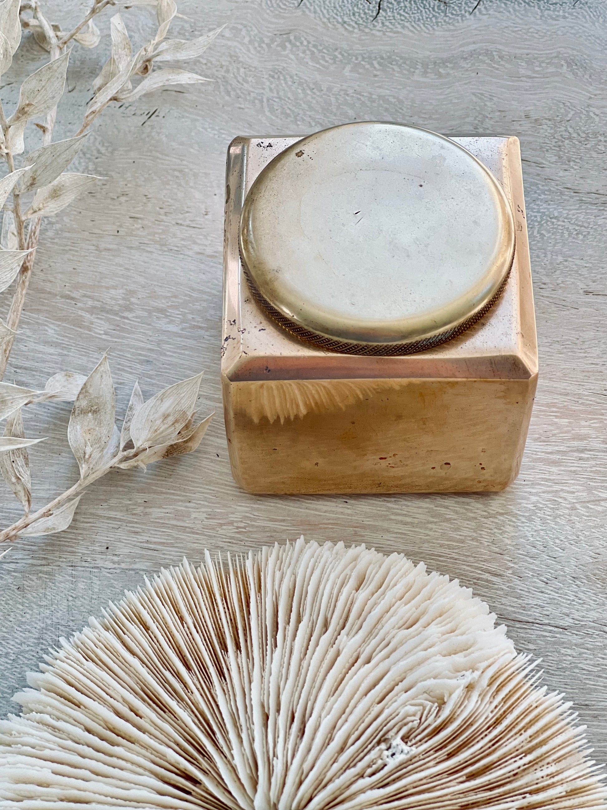 While the need for an inkwell for most of us has long passed, this vintage, solid brass vessel is irresistible with its timeless shape and aesthetic appeal. Use today to nestle atop a stack of books or layer in to a desk vignette.